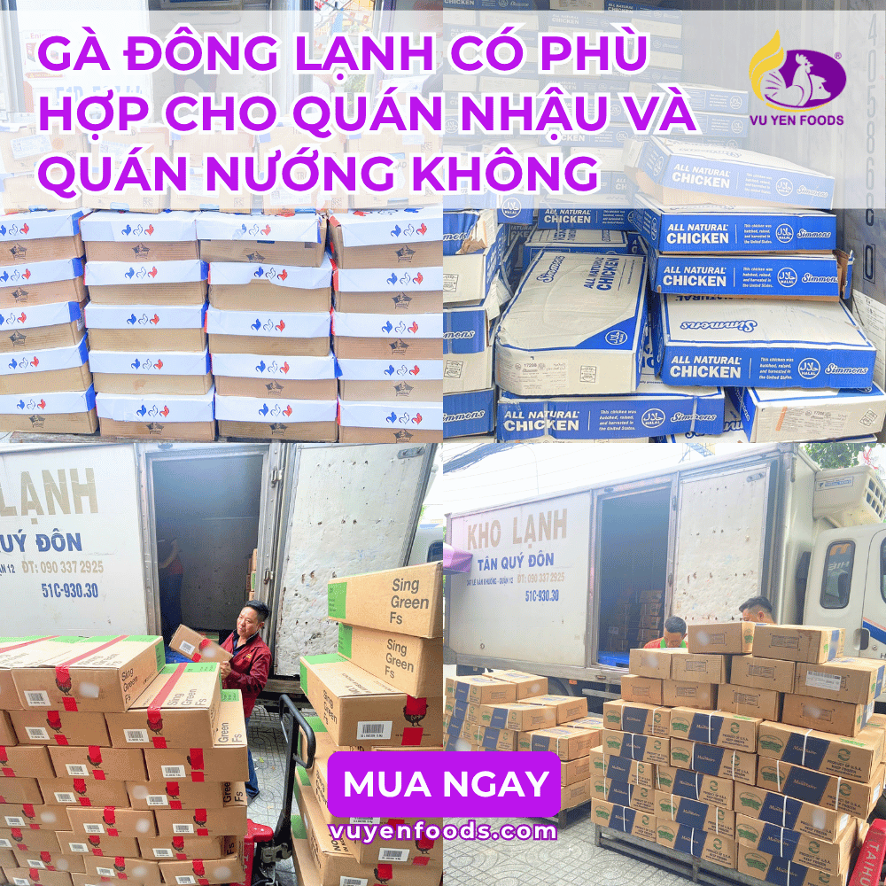 Gà đông lạnh hoàn toàn phù hợp cho quán nhậu và quán nướng, đặc biệt với các mô hình kinh doanh cần nguồn hàng ổn định, giá tốt và dễ vận hành.